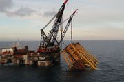Her er det 26.000 tonn tunge stålunderstellet til Johan Sverdup i Nordsjøen