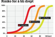 Da to busser møttes i 33 og 34 km/t døde den ene føreren. I privatbil overlever nesten alle møteulykker under 70 km/t
