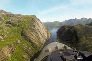 Her flyr F-16 lavt gjennom Trollfjorden