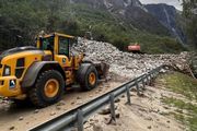 Steinskred på E16 i Nærøydalen: Usikkert når veien åpner igjen