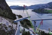 Siste element til Åstfjordbrua ble løftet på plass i går kveld