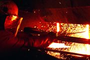 Denne betongknuseren klipper opp og skiller ut armeringsjern på byggeplassen